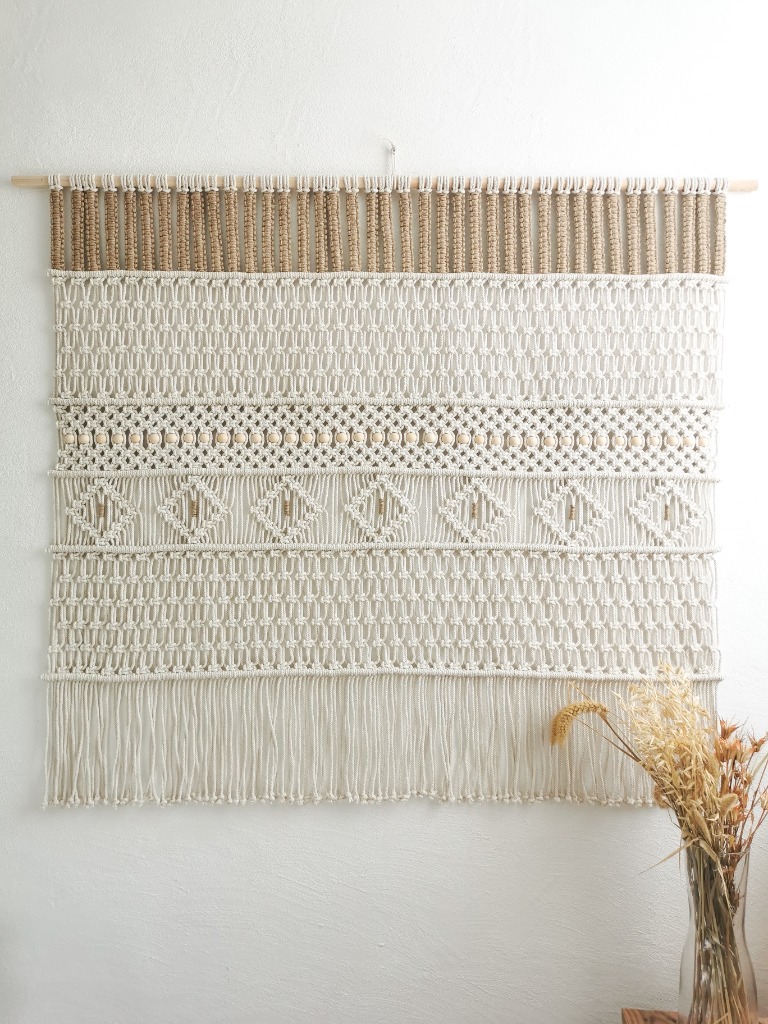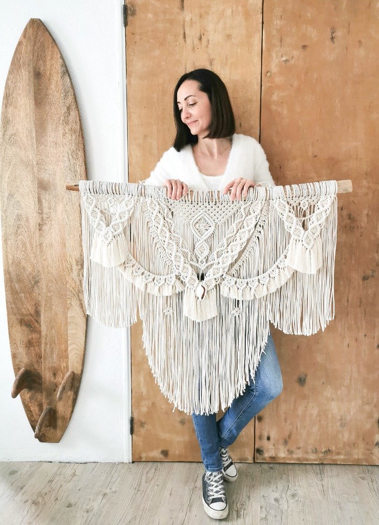 Forte de ces premiers ouvrages je décide alors de développer ma marque dédiée à la création de pièces en macramé destinées à venir décorer les jolis intérieurs de vos maisons.