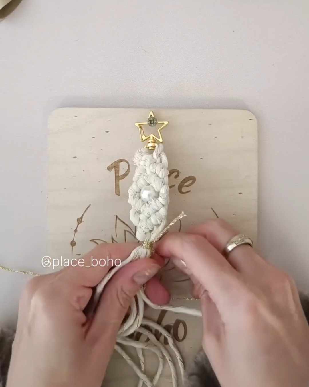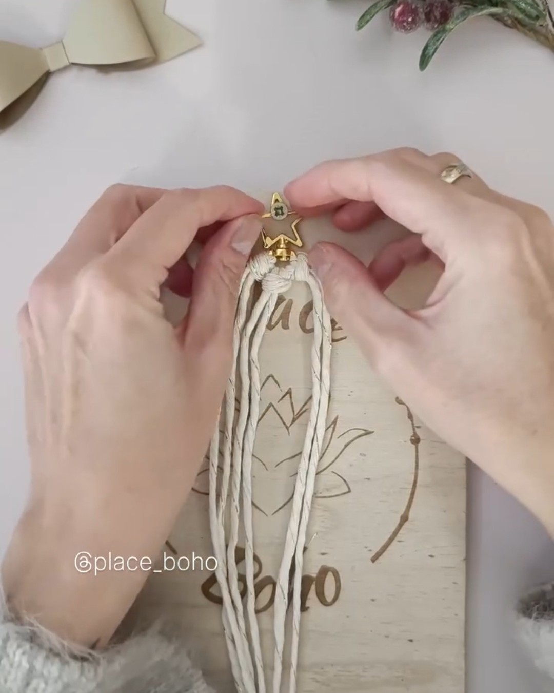 Attrapez le fil de lurex, faites un nœud enveoppant