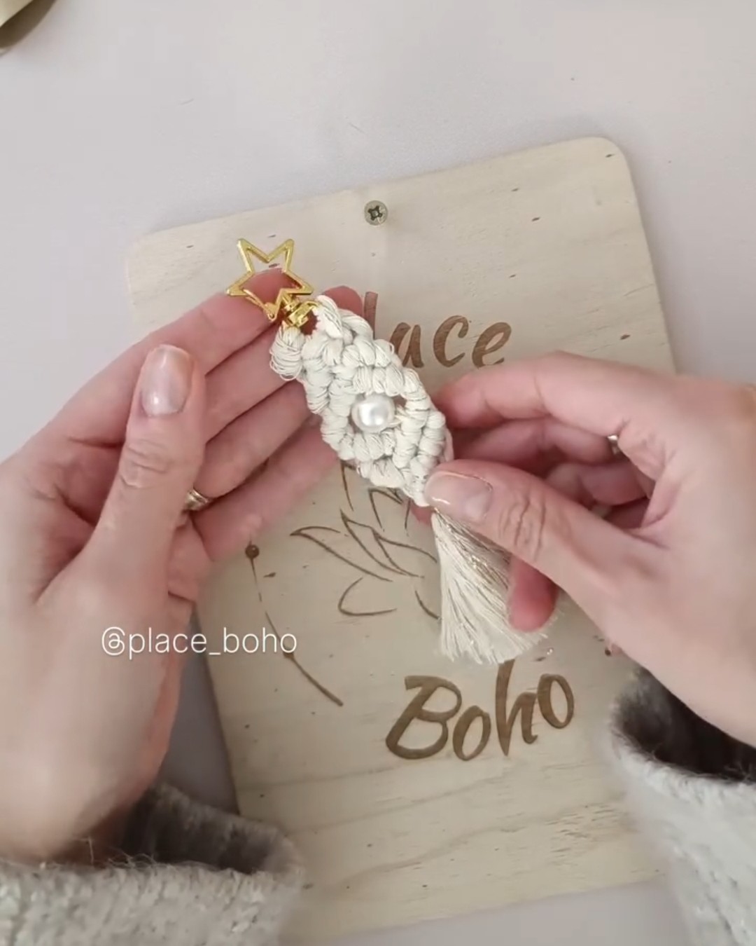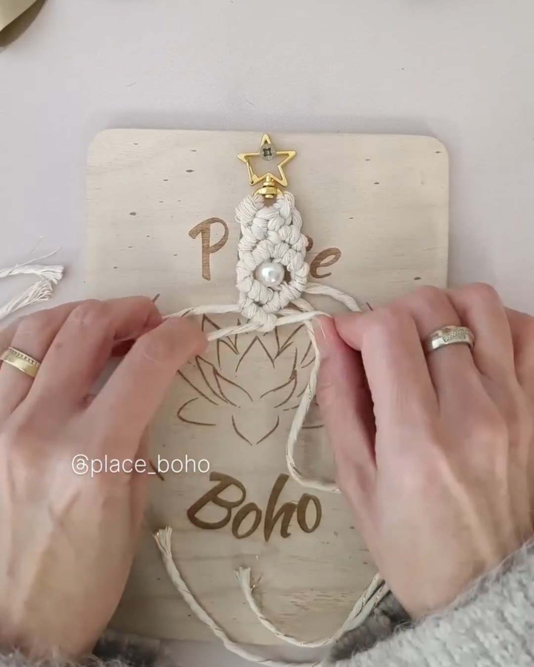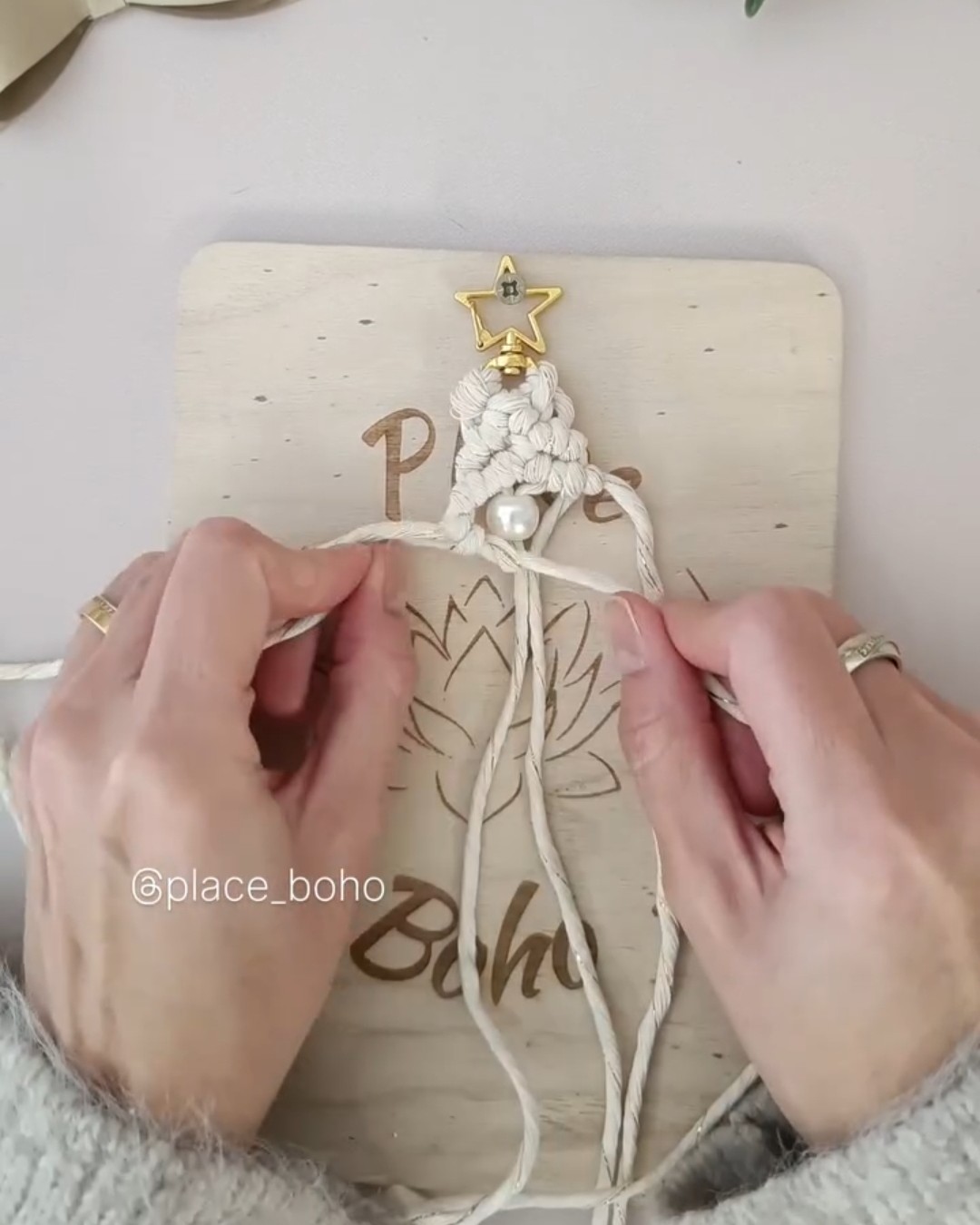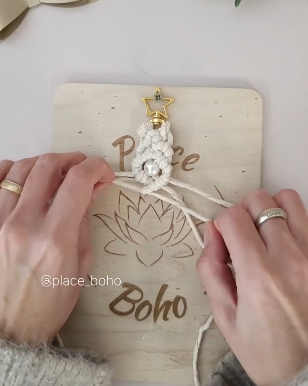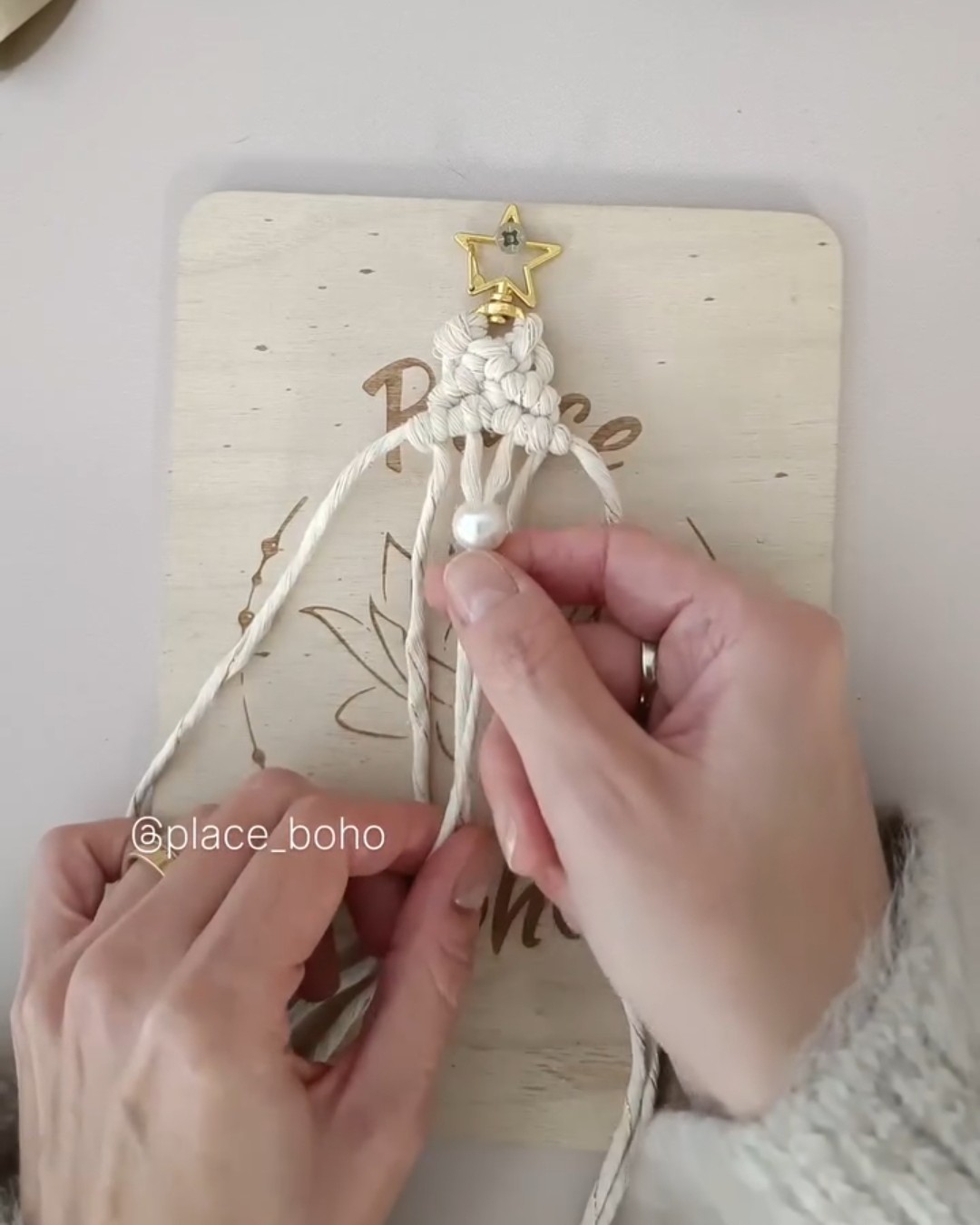 Insérez la perle dans les deux cordes du milieu.